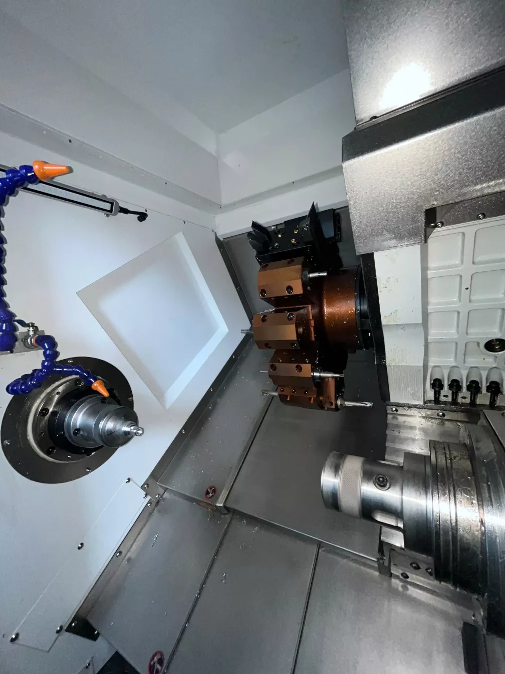بالمقارنة مع مخارط CNC التقليدية ، فإن أدوات الآلات CNC ذات النعمة المزدوجة ذات النسب المفردة تتمتع بدرجة أعلى من الأتمتة. يمكن أن تحقق المعالجة الآلية من خلال البرمجة ، وتقليل التدخل اليدوي والأخطاء ، وتحسين دقة المعالجة والاستقرار. يمكن تثبيت البرج على مقعد السكك الحديدية الشريحة مع أعلى وأسفل ، النزوح الأيسر واليمين ، وذلك للانتقال إلى الموضع المناسب وفقًا لمتطلبات المعالجة. عن طريق تحريك البرج ، يمكن لأداة الآلة إكمال تصنيع طرفي الشغل ، مما يؤدي إلى تحسين مرونة الآلات.